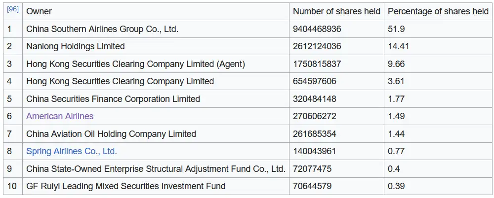 2019年1月,卡塔尔航空宣布购买南航5%的股份,成为南航在海外最大股东[50]。