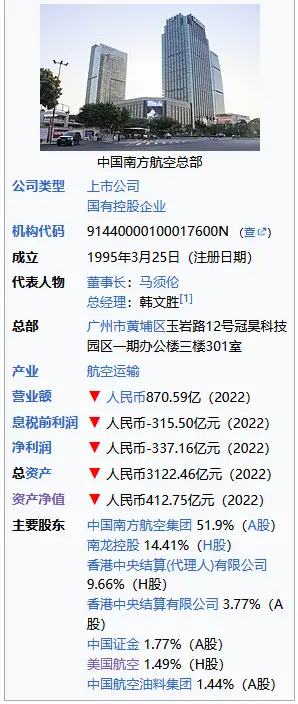 封面图片:这是一个企业、组织、政府或其他形式团体的标志,在中国南方航空条目中使用。