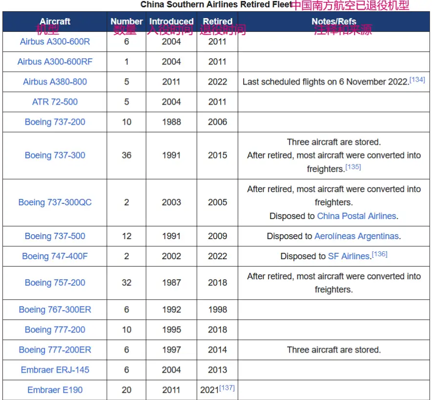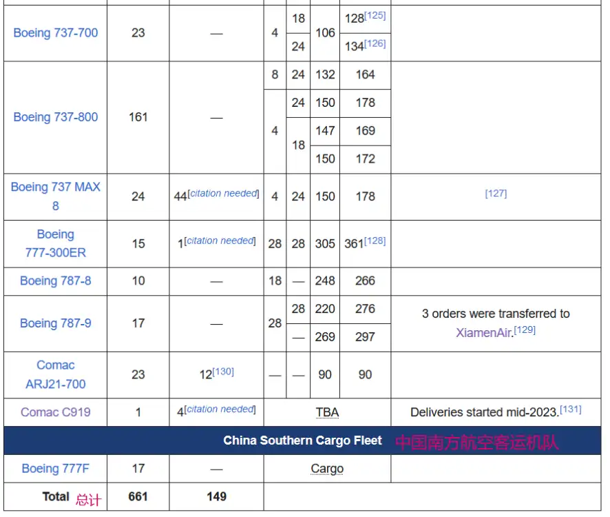 【参考译文】截至2023年12月,中国南方航空运营以下机型:[118][119]